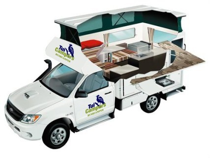 Far roomier than similar vehicles, this 4WD campervan is ideal for adventure active seeking couples. The extra fuel capacity means you can travel for longer without having to stop and the indoor and outdoor cooking facilities allows you to enjoy a dinner under the stars or in cosy Tui Bush Camper.